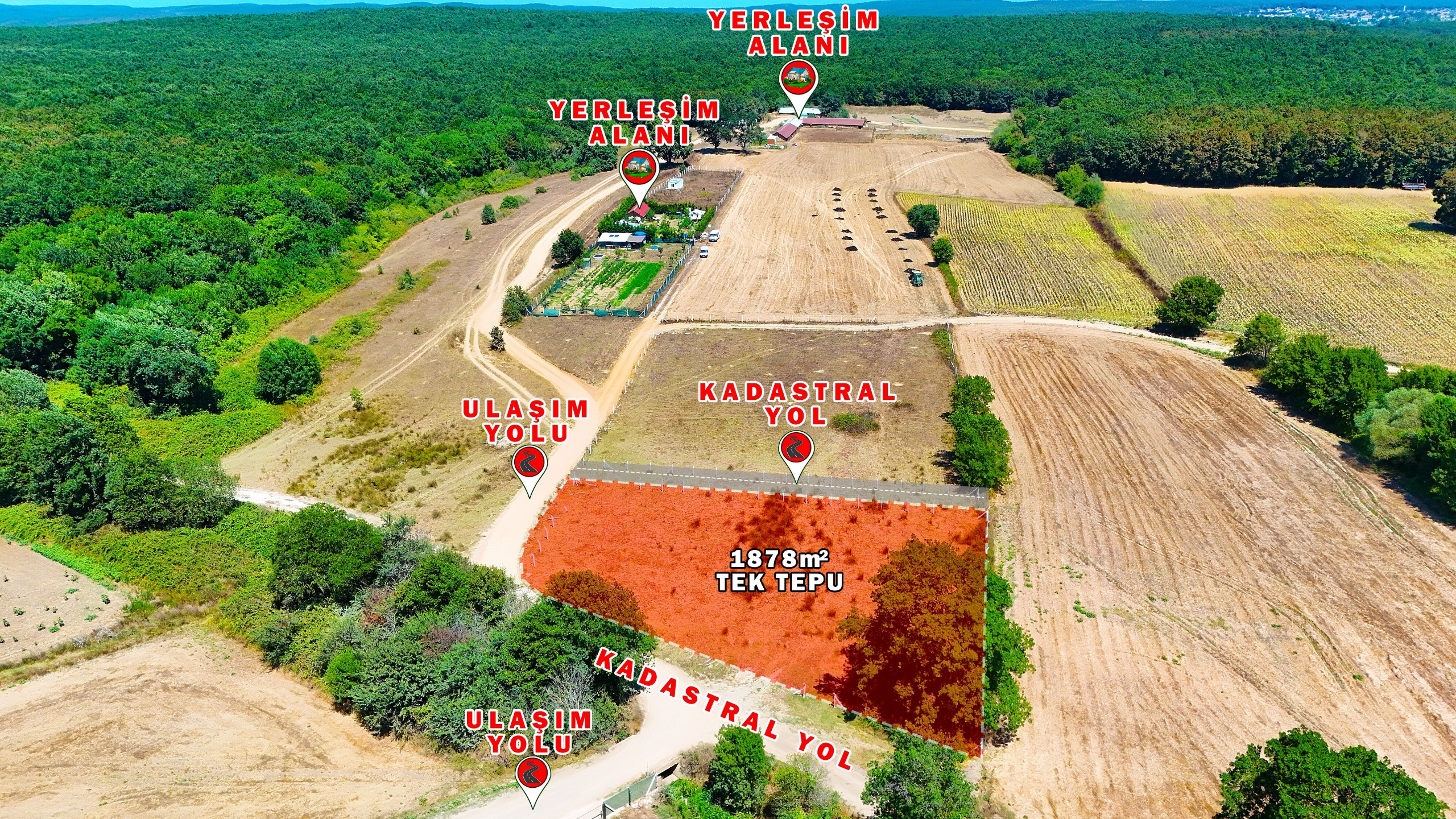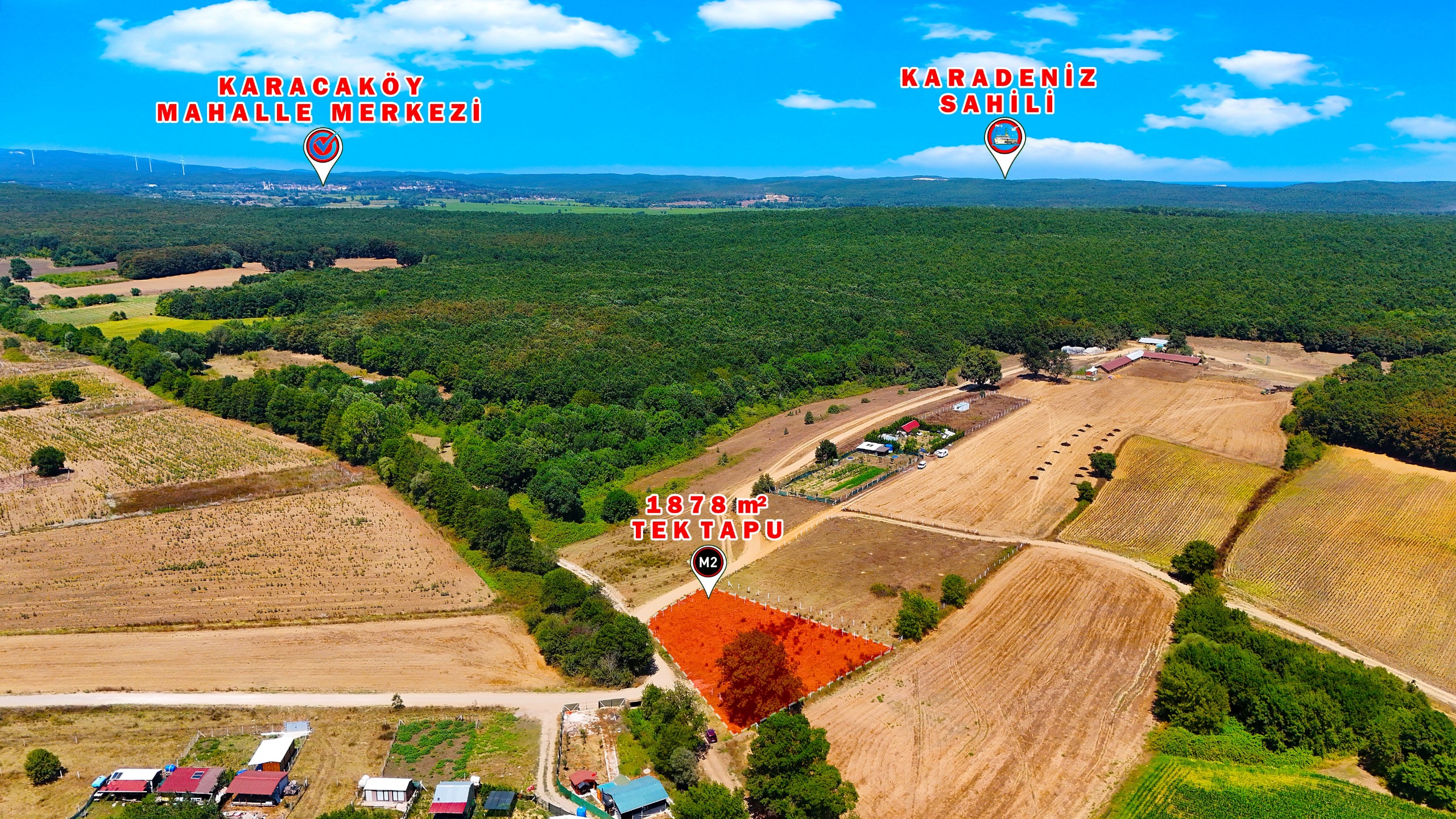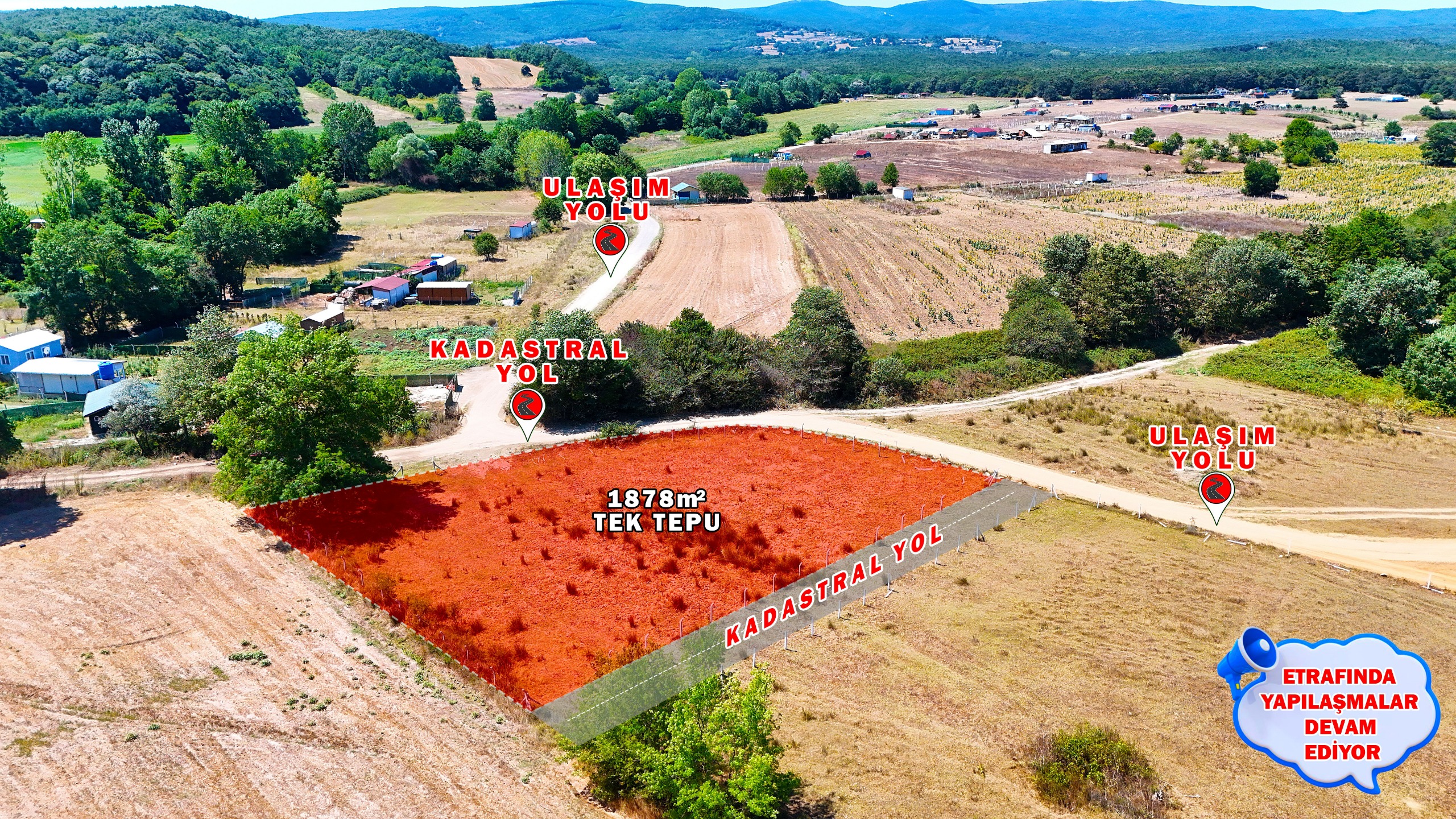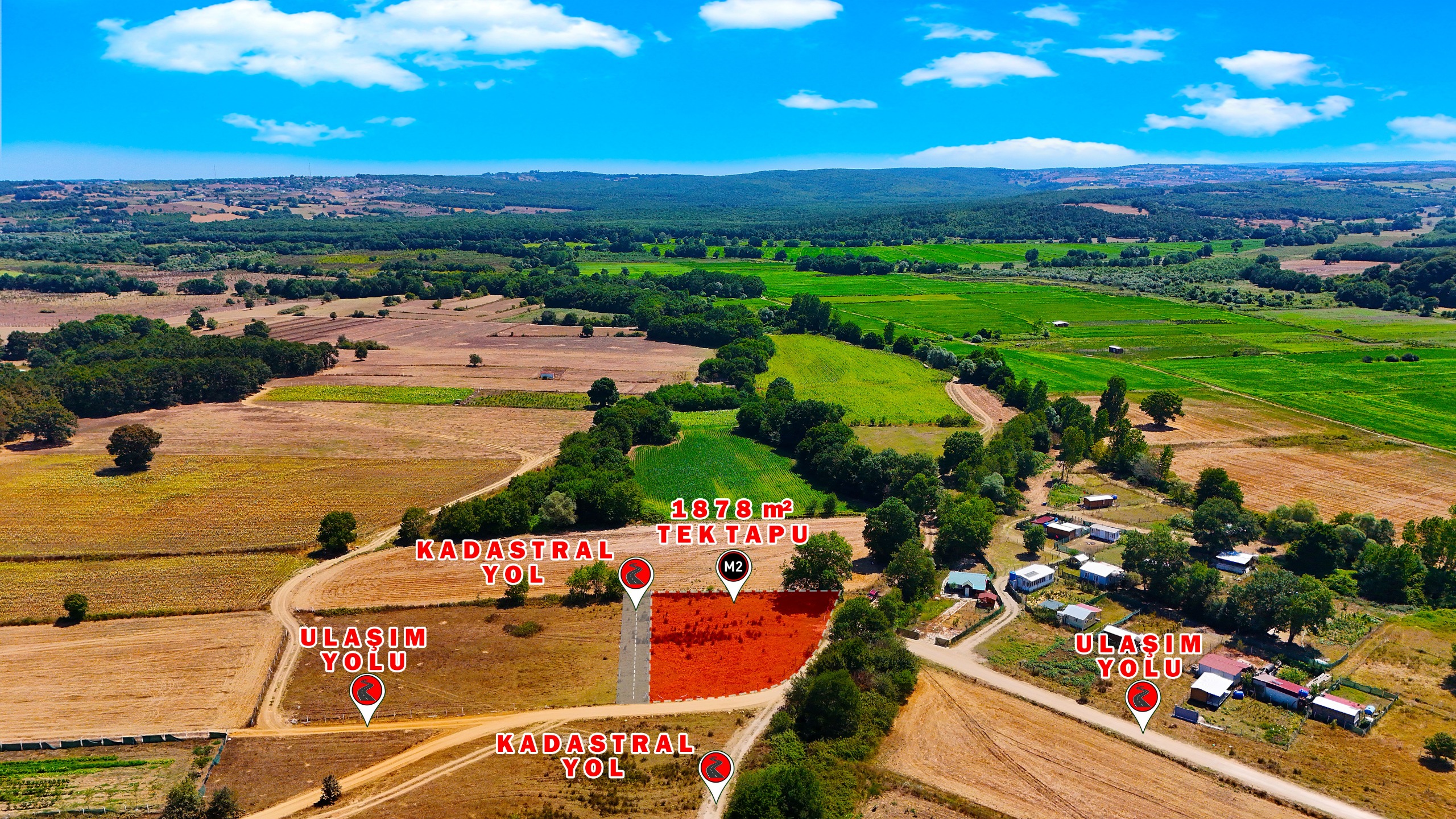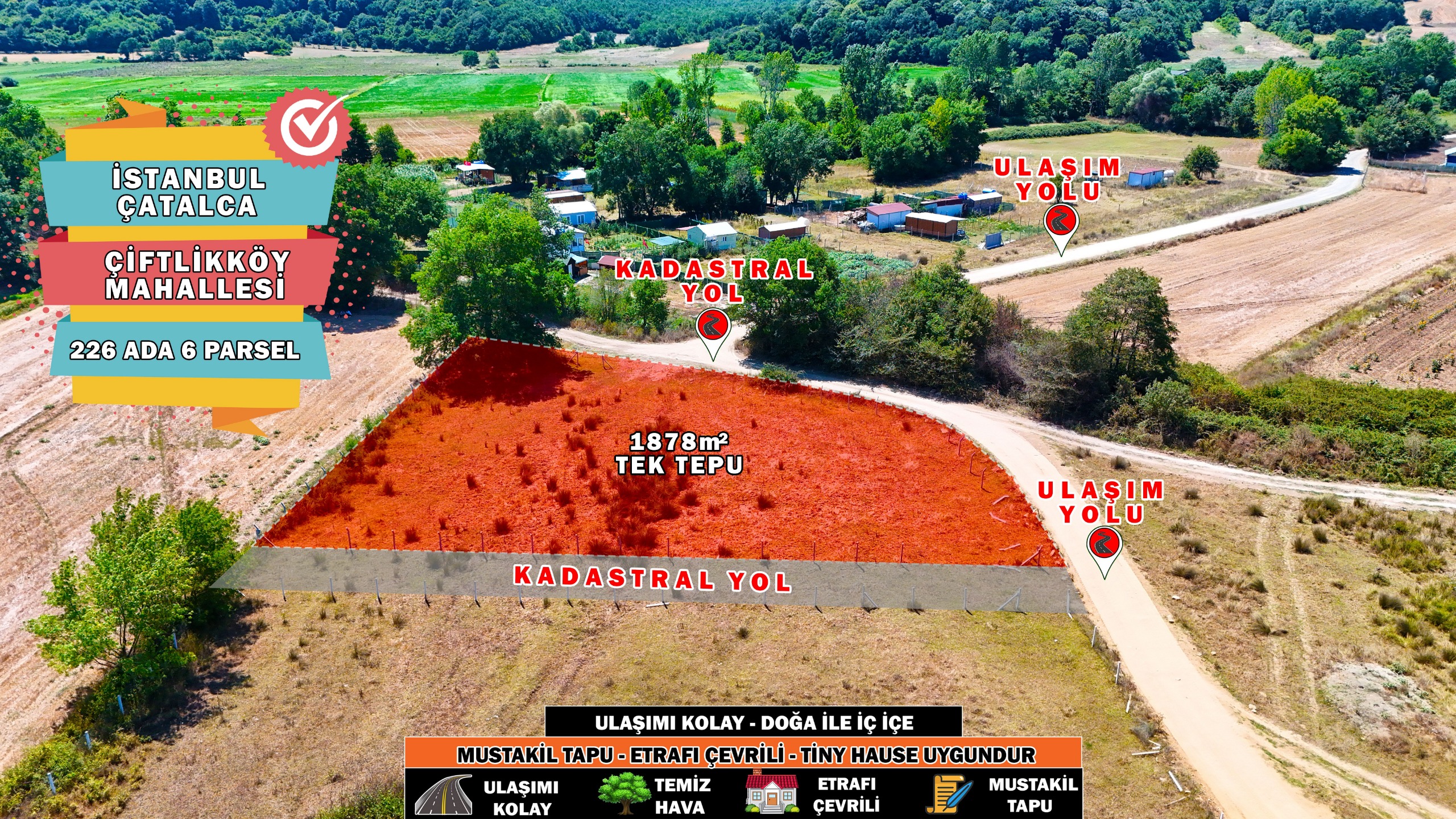 ÇATALCA ÇİFTLİKKÖY’DE 1878 m² TEK TAPU – YOLA CEPHELİ ARSA