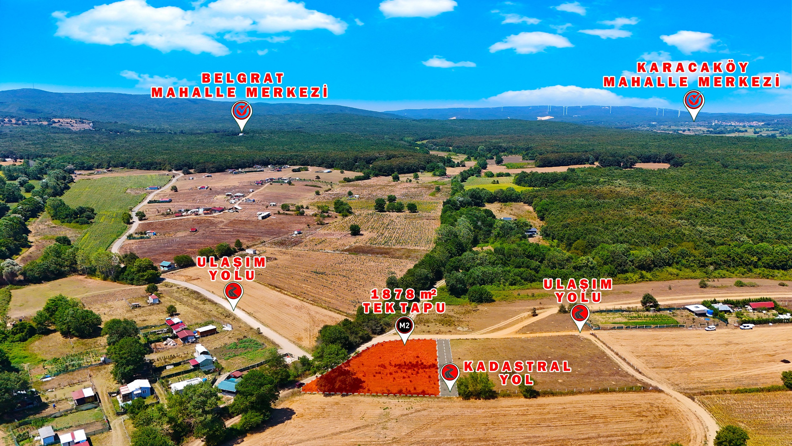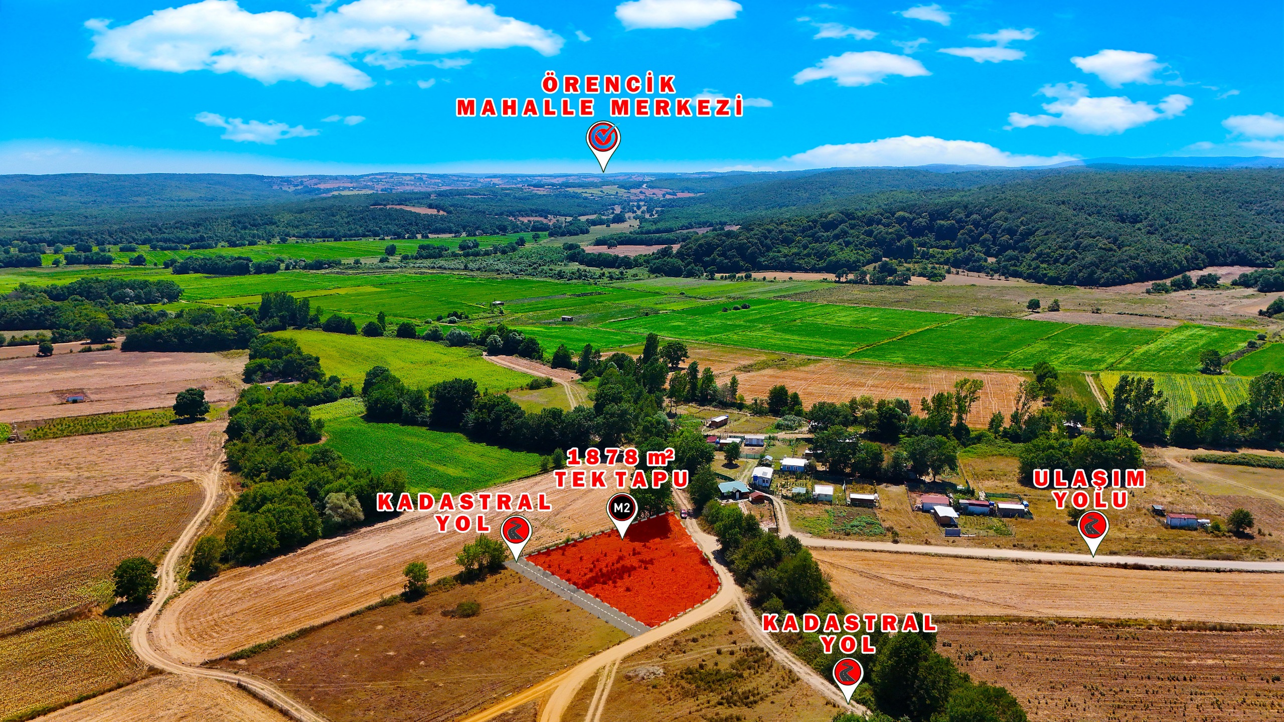 ÇATALCA ÇİFTLİKKÖY’DE 1878 m² TEK TAPU – YOLA CEPHELİ ARSA