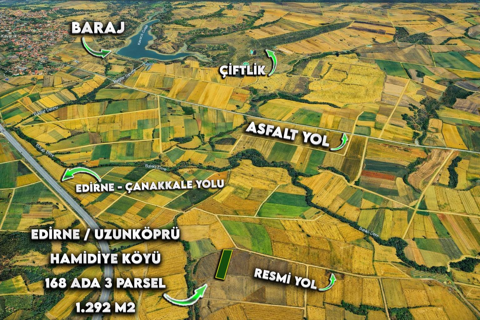 EDİRNE UZUNKÖPRÜ HAMİDİYE KÖYÜ’NDE TEK TAPU YOLA CEPHE ARSA!